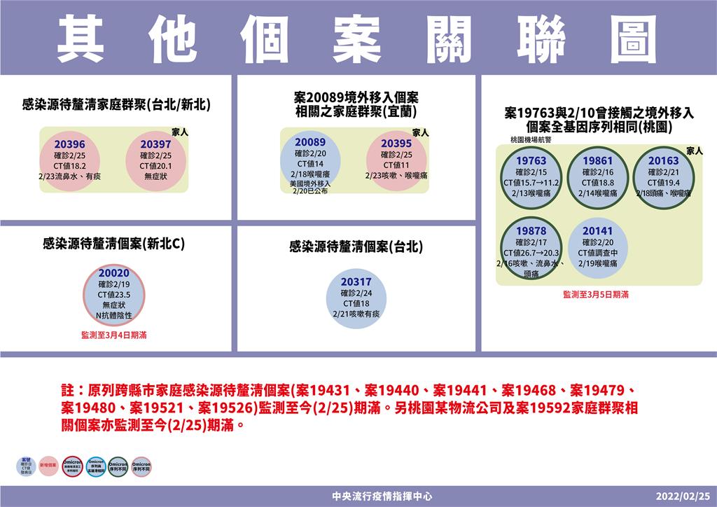 指揮官陳時中說明,今天新增的案20396和20397是父子,兒子(案20396)的太太是韓國籍,2/12入境台灣,選擇春節檢疫C方案,2/20期滿採檢陰性返家,返家前一天先生就搬出來和父母同住,到了2/24先生和父親採檢陽性確診。
