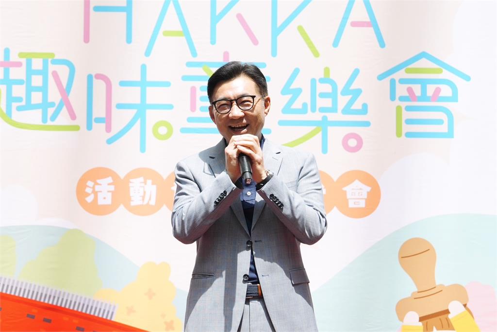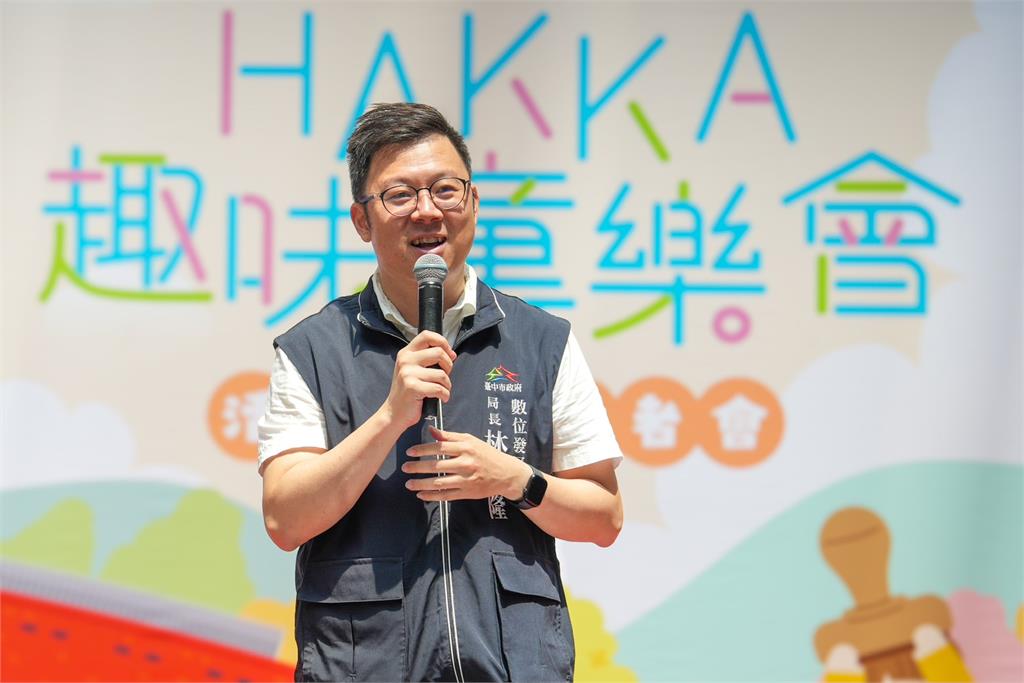 立法院副院長江啟臣以行動支持《台中通》用數位力推廣客家文化。圖/台中市政府數位發展局提供台中市客委會主委江俊龍說,「HAKKA趣味童樂會」活動融合數位創新與客家文化,同時安排超人氣親子表演,以及氣球及魔術等精彩表演;活動結合《台中通》APP設計集章遊戲,關卡特別融入客語,透過遊戲學習更多客家文化與知識,完成全部關卡還可以兌換限量版石虎家族便當袋,歡迎大小朋友當天踴躍參加!