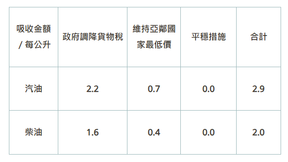 台灣中油表示,本週受美國能源資訊管理局(EIA)公布美國商用原油庫存下降影響,導致國際油價上漲。按浮動油價機制調整原則,汽、柴油每公升應調漲0.8元及0.5元,惟為維持價格低於亞洲鄰近國家(日、韓、港、星),汽、柴油各吸收0.7元及0.4元。