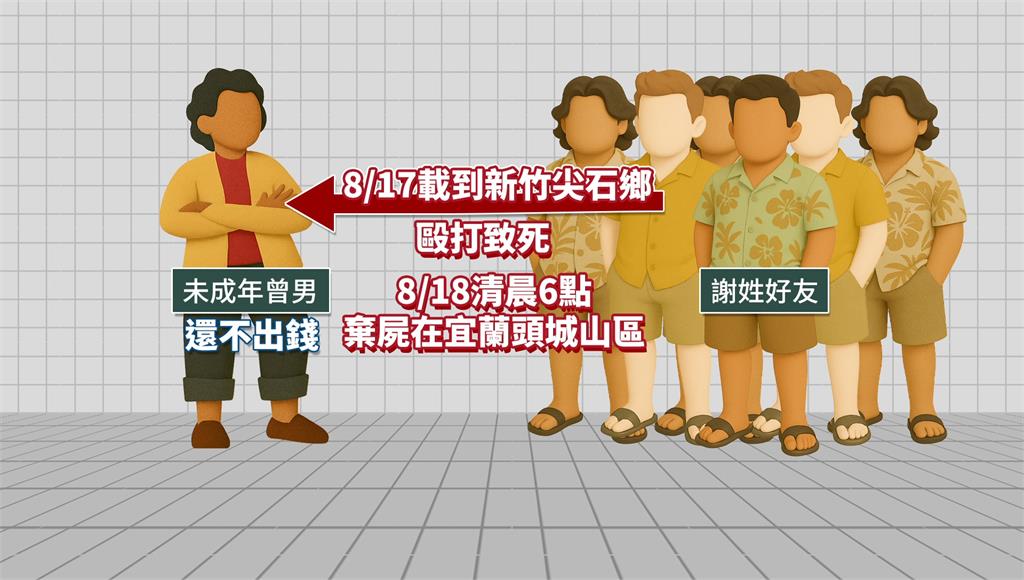 宜蘭縣頭城鎮驚傳棄屍命案!一名來自新竹縣竹東鎮的未成年曾姓男子,疑因與多年好友之間的債務糾紛,遭對方夥同8人私刑毆打致死後棄屍山區,甚至還假冒綁匪向家屬勒索贖金。警方目前已逮捕9名涉案嫌犯,並持續調查是否仍有共犯在逃。