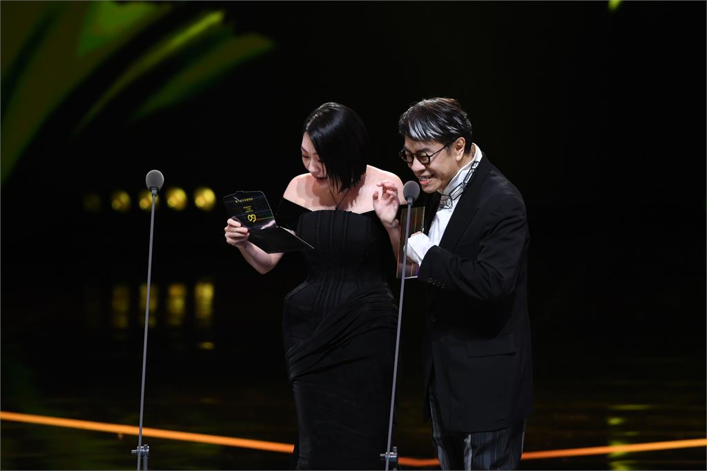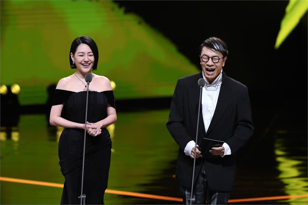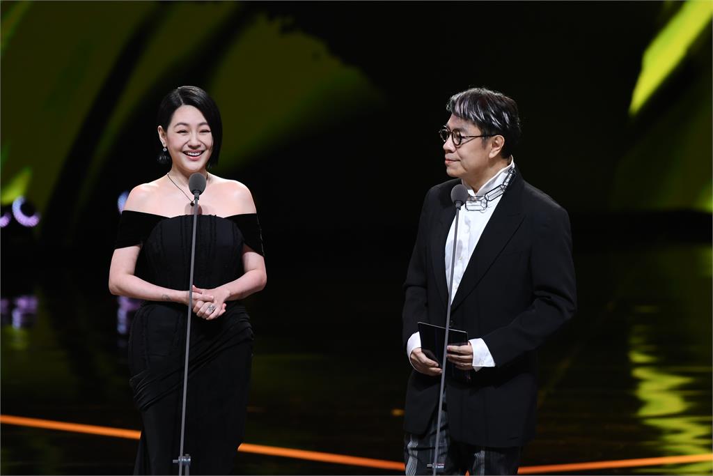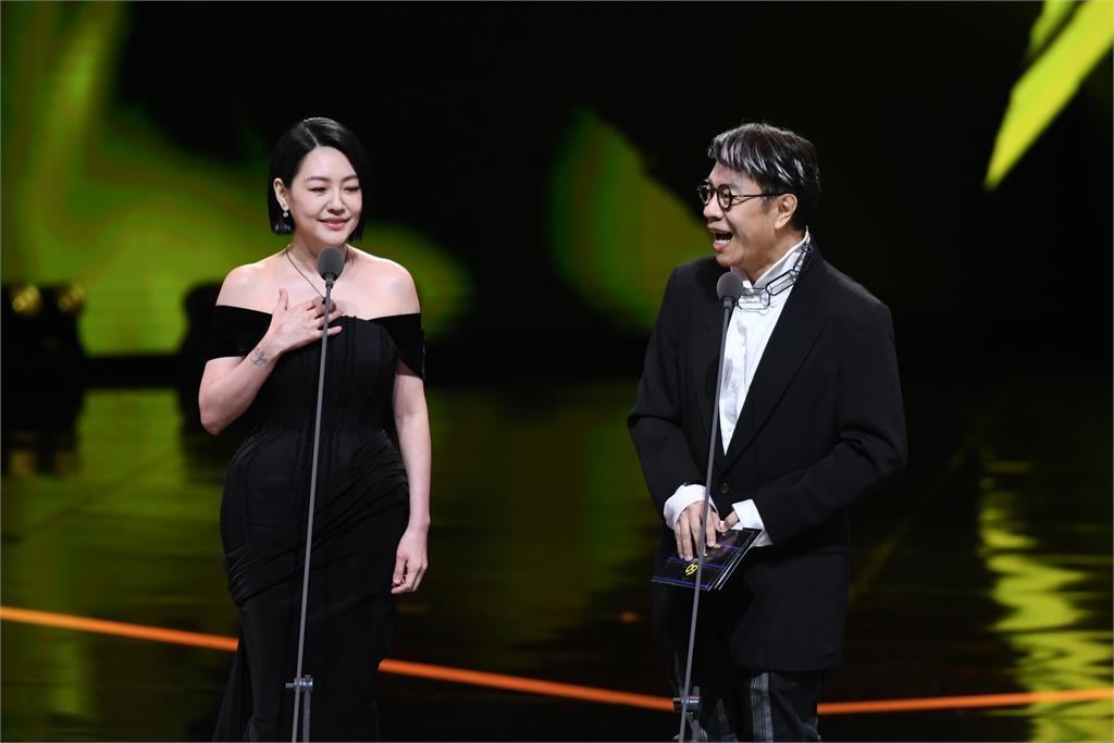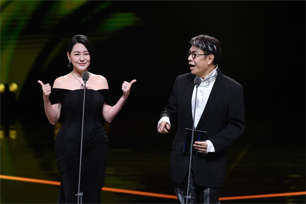 小S合體蔡康永頒獎,兩人重現《康熙來了》主持口條逗樂全場。圖/三立電視畫面提供此外,小S也不忘虧同樣入圍主持人獎、曾經在《康熙來了》當助理主持的陳漢典,「他靠的一直都是吳宗憲,現在還靠老婆Lulu放閃」,蔡康永更趁勢要她模擬落榜後祝賀陳漢典得獎的笑臉,她比讚僵笑的尷尬臉逗樂所有人。