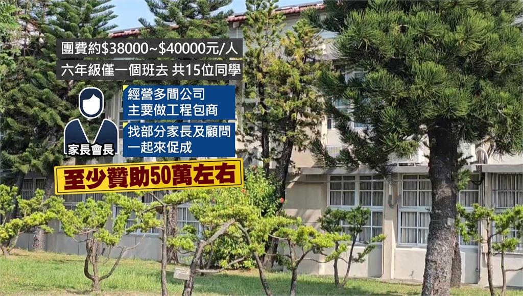 原來是家長會長大方贊助。圖/台視新聞原來是家長會長大方贊助,團費一人大約3萬8到4萬元,六年級僅一個班去,共15位同學,低調的家長會長經營多間公司,主要做工程包商,找部分家長及顧問一起來促成學生的畢業之旅,至少贊助50萬左右。該校校長也表示「會長這裡跟家長討論之後,也是希望不要增加其他家長太大的負擔,讓孩子用原本以往畢旅的費用,但是能夠走這個日本的行程。」