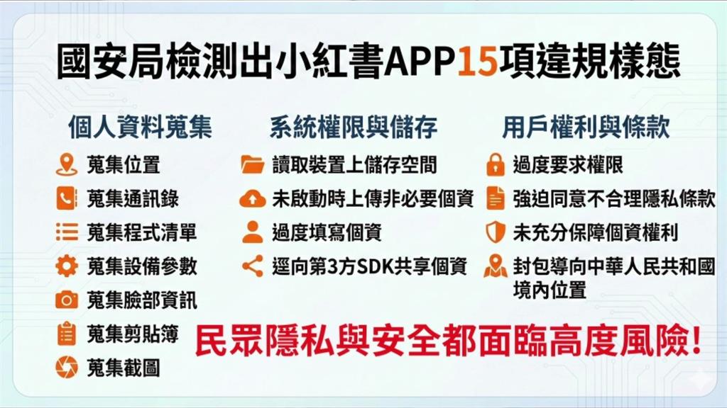 國安局日前針對小紅書進行資安檢測,發現15項指標全數不合格,民眾個資面臨高度風險,就連中國政府也多次對小紅書開罰,在美國德州甚至直接禁止使用。