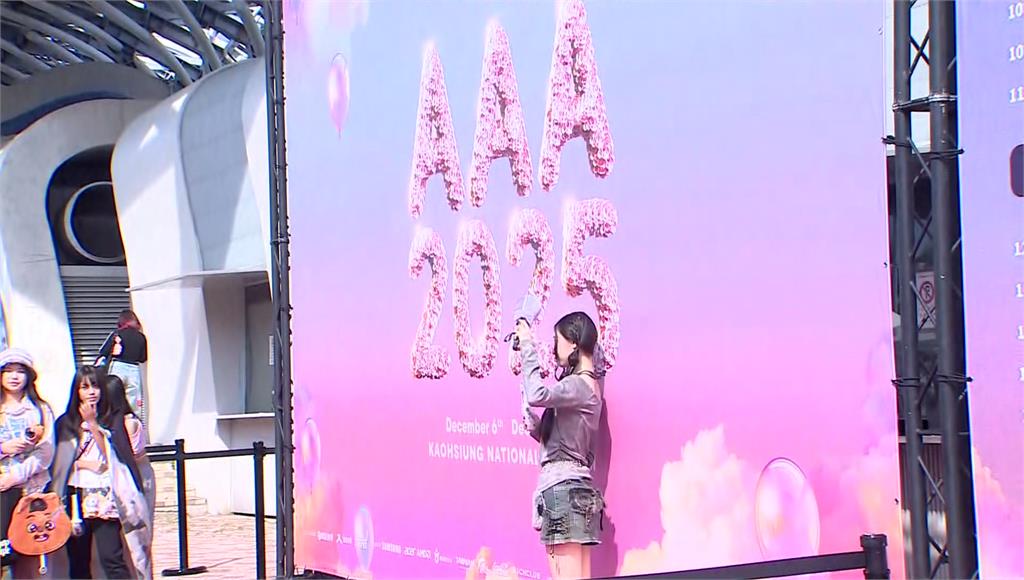 韓國年度音樂盛會AAA今(6)天下午登場,這也是10年來首度移師高雄舉辦,將有41組卡司登場,包括朴寶劍、IU、女團IVE等,一早就有粉絲到場館外聽彩排漏音,和應援背板拍照打卡,台視新聞團隊也直擊現場,熱鬧非凡。