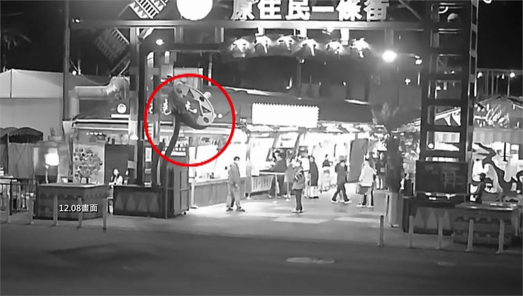 招牌重重砸向地面,路過的民眾險些被砸中,嚇得急忙閃躲。圖/台視新聞掉落的招牌是一個重達約200公斤的裝置藝術,疑似接縫生鏽,禁不起劇烈搖晃,整塊斷裂鬆脫,重重砸向地面!原民處找來廠商與攤商共同會勘受損設施,原民處表示,將依檢修結果決定招牌要補強或是拆除重建,處長馬呈豪說明,趁這次的機會重新檢修設施設備,安全的話,會再有一些補強,有安全疑慮的,今天會整個拆掉重新再做一個。