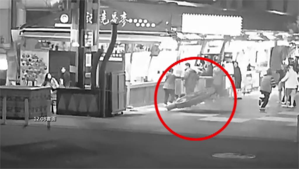 花蓮近海8號晚間發生芮氏規模5.7地震,最大震度達4級,位在東大門夜市原住民一條街入口,一個重達約200公斤的招牌,因為劇烈搖晃突然掉落,險些砸傷路過民眾,監視畫面曝光,讓人看了捏了一把冷汗。