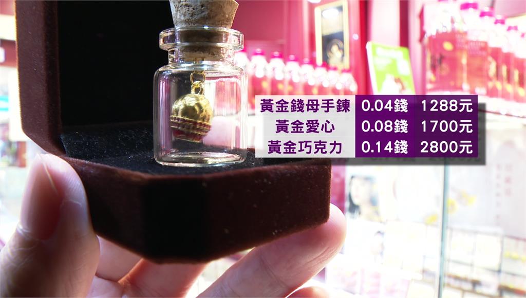 實際到銀樓後,還可以看到更多迷你款式,像是跟招財貓一樣小到看不太清楚的黃金貔貅0.02錢重,價格約500到600元;黃金星星0.04錢,900百元;貔貅手鍊0.03錢重,約994元,如果預算多一點,超過千元的還有黃金錢母手鍊、愛心、巧克力造型黃金等。