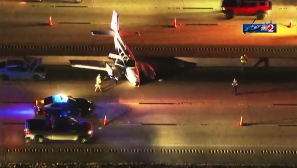 飛機迫降在高速公路上,砸中一輛汽車。圖/翻攝自CNN目擊者直言,從未近距離目睹過這種場面,當時他們就在事故後方,就差3秒,真是太可怕了,碎片飛過來只好猛打方向盤,迅速靠邊停車。