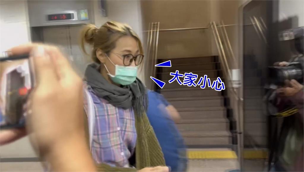 面對大批媒體拍攝,謝姓記者提醒「大家小心」。圖/台視新聞※未經判決確定者,應推定為無罪