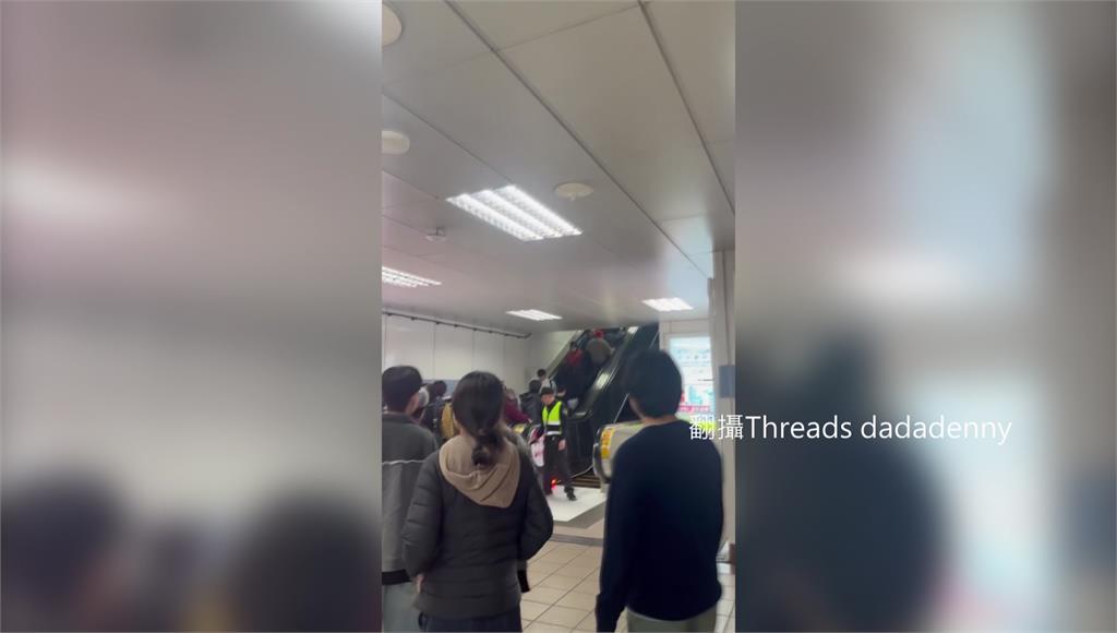 旅客誤觸緊急停機鈕,忠孝復興站電扶梯暫停。圖/翻攝自Threads@dadadenny