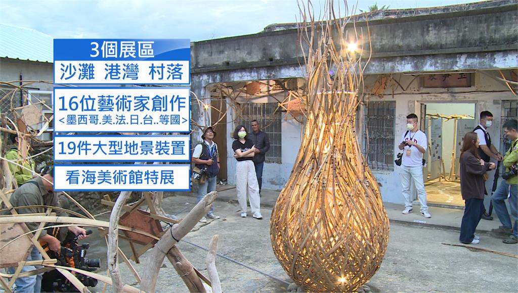 現場規劃三個展區,包括沙灘、港灣及村落,共有16位藝術家參與創作,涵蓋墨西哥、美國、法國等多個國家,展出19件大型地景裝置,另有看海美術館特展,展區內容相當豐富。