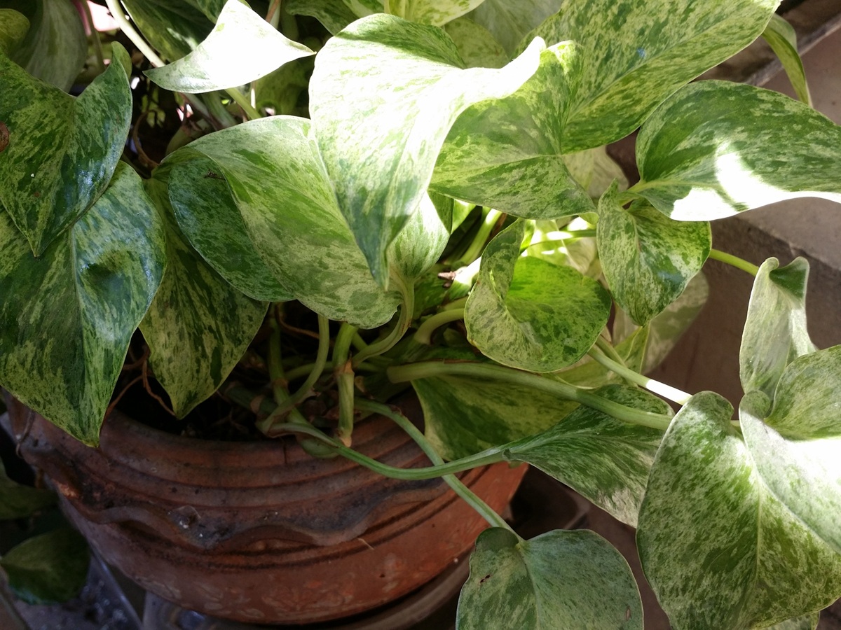黃金葛生命力旺盛、葉片翠綠油亮,擺在書桌或電腦旁,工作疲累時抬頭看看那片片綠葉,就像給眼睛做SPA一樣舒服。而且它能增加空氣濕度,改善冷氣房裡眼睛乾澀的問題!記得,黃金葛喜歡半陰環境,不需要強光,正好適合室內擺放。