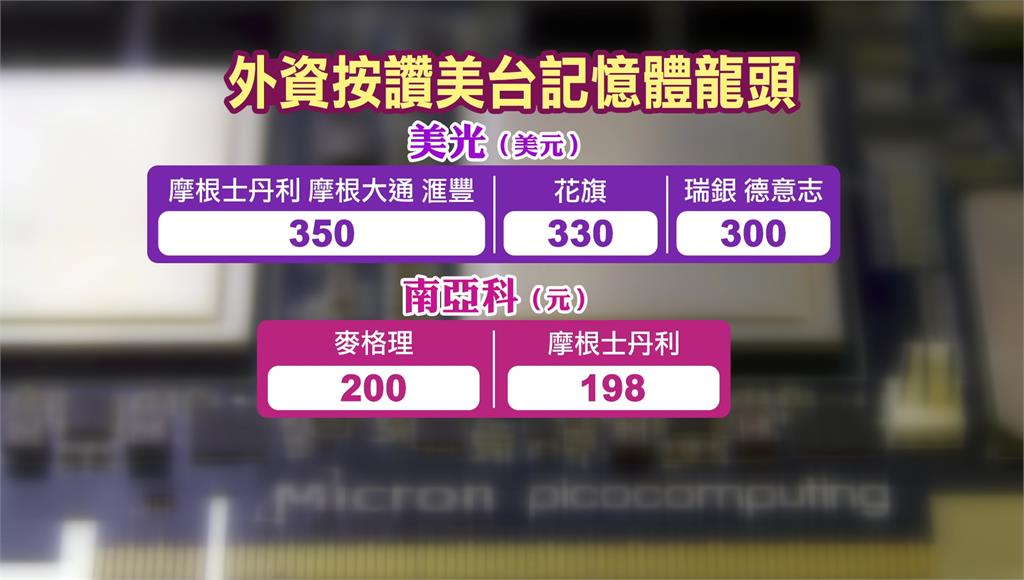 記憶體仍處於大缺貨狀態,供不應求之下,報價直線上升。圖/非凡新聞外資在耶誕假期前提前卡位,欽點美、台記憶體雙王,花旗環球、摩根大通跟匯豐等六家外資,把美光的目標價提高到300多美元;麥格理和大摩也看好台股的南亞科,目標價喊到200塊附近。