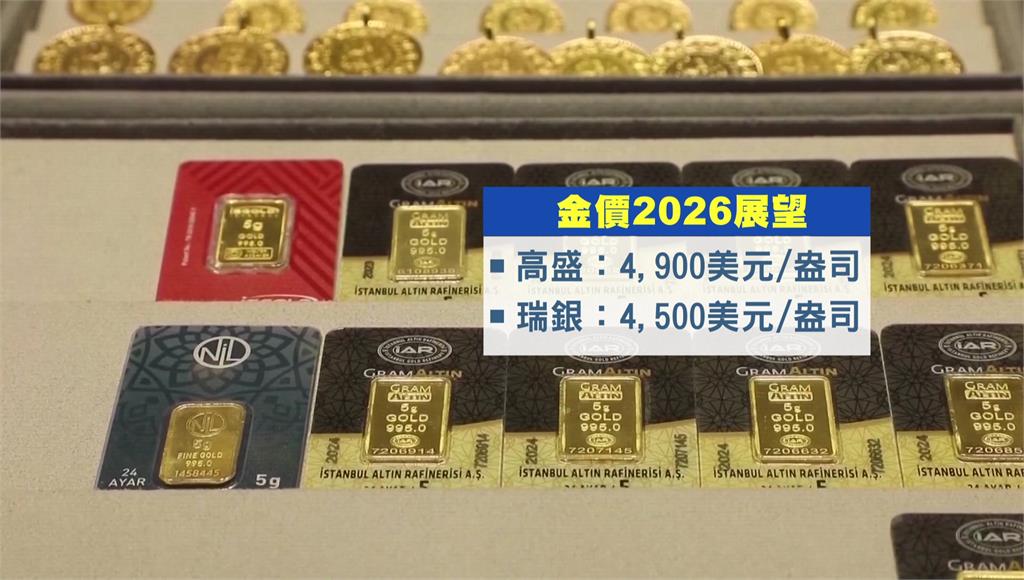 烏克蘭日前也首度用無人艇,在地中海擊中俄羅斯影子艦隊油輪,打擊俄國原油供應,在全球動盪之下,高盛預估金價明年可望來到每盎司4900美元,瑞銀則喊出4500美元的目標價。此外,市場也押注聯準會明年降息兩次,進一步推升價格。