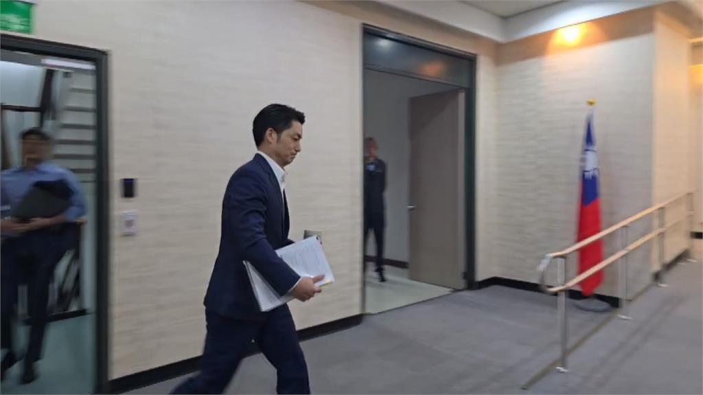 蔣萬安被問及撫恤金問題,神情凝重快步離去。圖/台視新聞