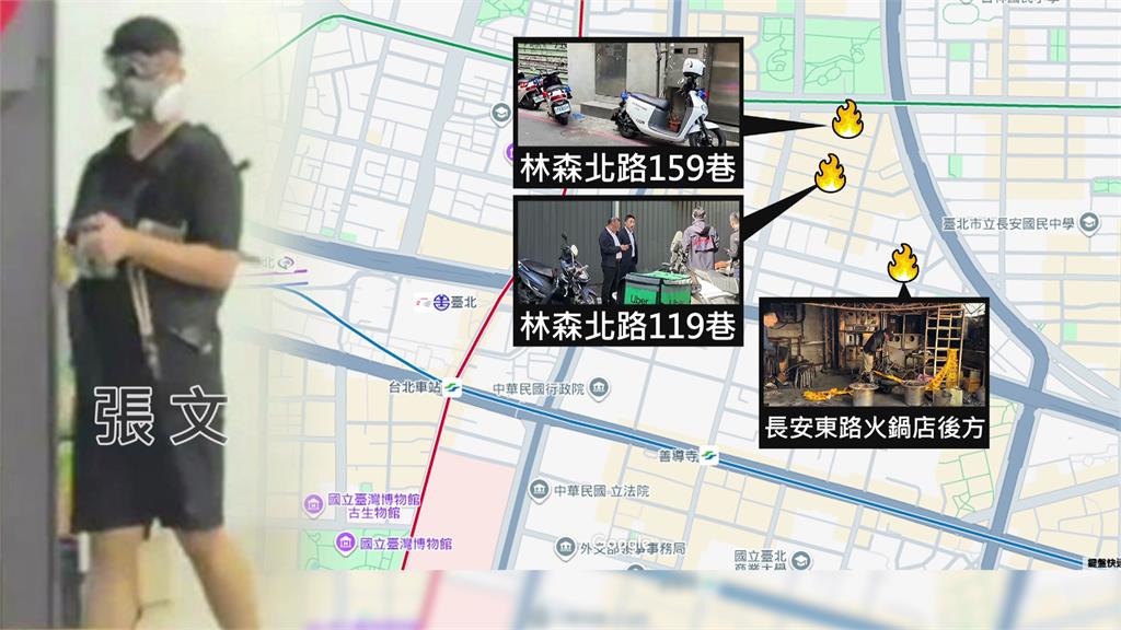 專案小組今天大陣仗封街,透過3D掃描儀重建現場。檢察官徒步,把兇嫌張文的犯案流程走過一遍,發現他當天下午3點先用潑灑汽油方式,在林森北路兩處兩弄內縱火之後,再到長安東路火鍋店後面巷子縱火,8分鐘燒5輛汽機車,讓警方在三個起火點疲於奔命。且警方還在縱火處一頭霧水時,張文已經在下午約5點20分時抵達北車開始攻擊,趁亂變裝匿蹤之後,最後再到中山百貨攻擊民眾。