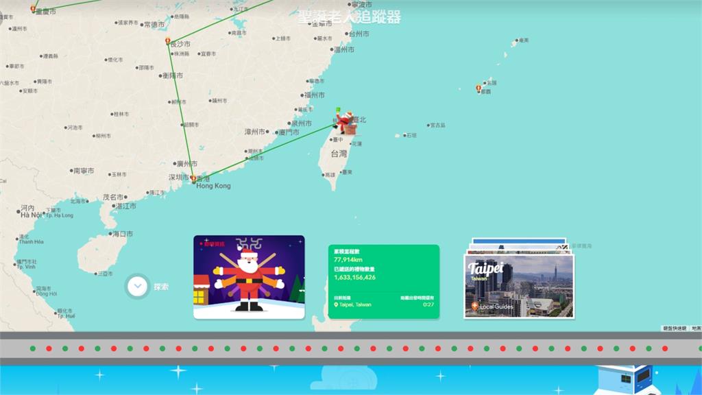 耶誕老人抵達台北。圖/翻攝自耶誕老人追蹤網站