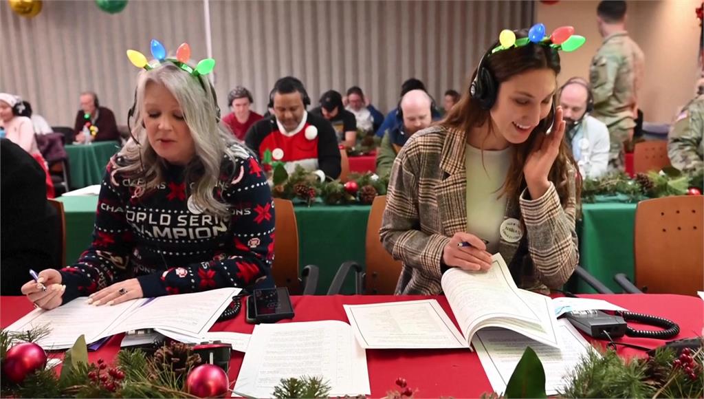 從此每年平安夜,北美防空司令部就會舉辦「追蹤耶老」活動。圖/美聯社北美防空司令部今年更首度開放官網直撥電話,有上千名志工值班,接聽各地小朋友的詢問電話,傳遞濃厚的佳節氣氛。