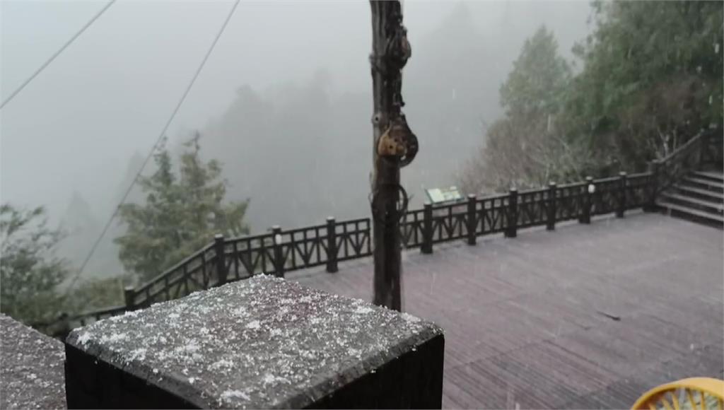 入冬以來最強「大陸冷氣團」來襲!宜蘭太平山國家森林遊樂區今(26)天清晨6點30分開始,間歇降下冰霰,遊客興奮拿起手機拍下美麗雪白景象。