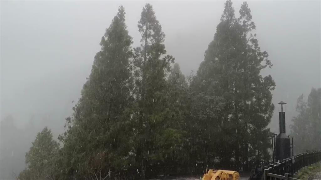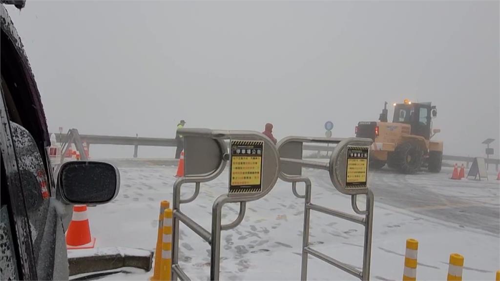 合歡山一早下起冰霰、冰雹,公路局出動鏟雪車清理路面積雪。圖/台視新聞隨著大陸冷氣團持續發威,松雪樓、武嶺停車場一帶都明顯降下冰霰,山上也早有不少民眾不畏寒冷天氣,開車上山前來追雪並拍照留念,不過低溫也讓道路結冰,公路局上午8點起,針對台14甲線昆陽到大禹嶺路段,實施限加掛雪鏈通行,也已出動黃色鏟雪車清除路面積雪,全力維持道路安全,籲請上山追雪的民眾務必配合管制。