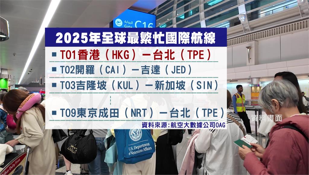 2025年即將結束,全球最繁忙國際航線排行榜也出爐,台北-香港航線提供高達683.2萬個座位數,拿下第一名,而台北-東京成田航線拿下第九名。另外,明年春節連續假期長達9天,旅遊平台透過機票銷售做出國人最愛的出國城市排行,顯示日本還是國人最愛,前十名就占了五席。
