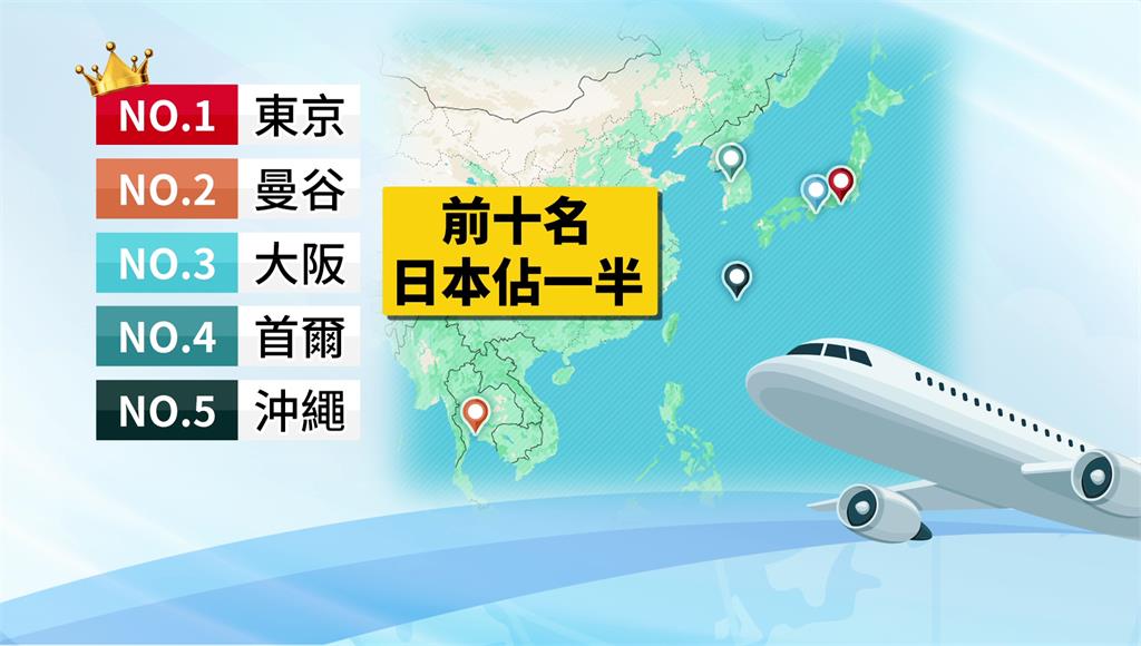 再過大概一個半月就要迎接農曆春節,連假長達九天,不少民眾打算出國旅遊,有人喊出土耳其、印尼、韓國,其中以日本呼聲最高。有旅遊平台透過機票銷售數據做出國人最愛的出國城市排行,又以東京奪冠,第二則是泰國曼谷。值得注意的是,日本拿下前五名中三個席次,前十名中更包半一半席次。
