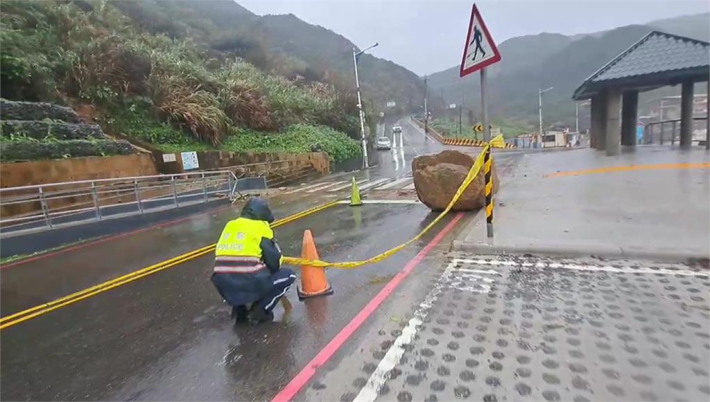 基隆湖海路近大武崙沙灘路段有巨石滾落。圖/台視新聞 基隆驚傳巨石崩落! 今(31)日上午10點多,基隆市湖海路、靠近大武崙沙灘的路段,一顆幾乎與汽車大小相當的岩石突然從山壁滾落,直接掉落在車道上,所幸事發當時並未有民眾及車輛遭砸中。目前基隆市政府工務處已緊急調派機具前往現場進行清除,提醒民眾行經該路段務必減速慢行、注意安全。基隆湖海路近大武崙沙灘路段有巨石滾落,警方拉起封鎖線。圖/台視新聞責任編輯/網路中心