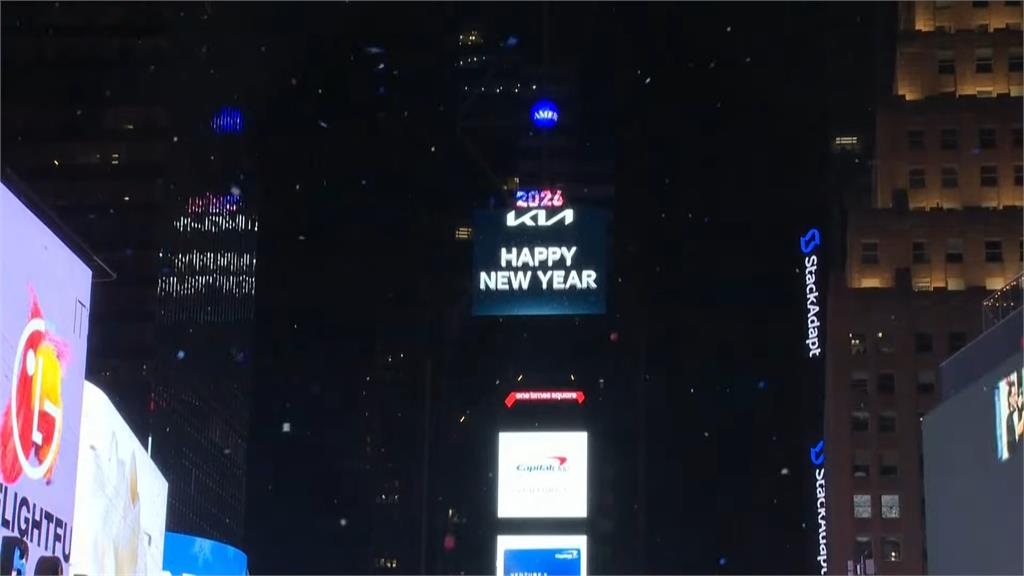 全球壓軸跨年秀登場!台灣時間1月1日下午13點輪到美國紐約迎接新年,時報廣場在倒數聲中降下水晶球,接著在午夜鐘聲敲響之際再次升起,還有發射煙火及彩紙,熱鬧迎接2026以及美國建國250週年。
