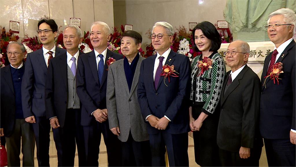 吳東亮夫妻以及魏寶生等人,特意到創辦人吳火獅銅像前致意。圖/台視新聞