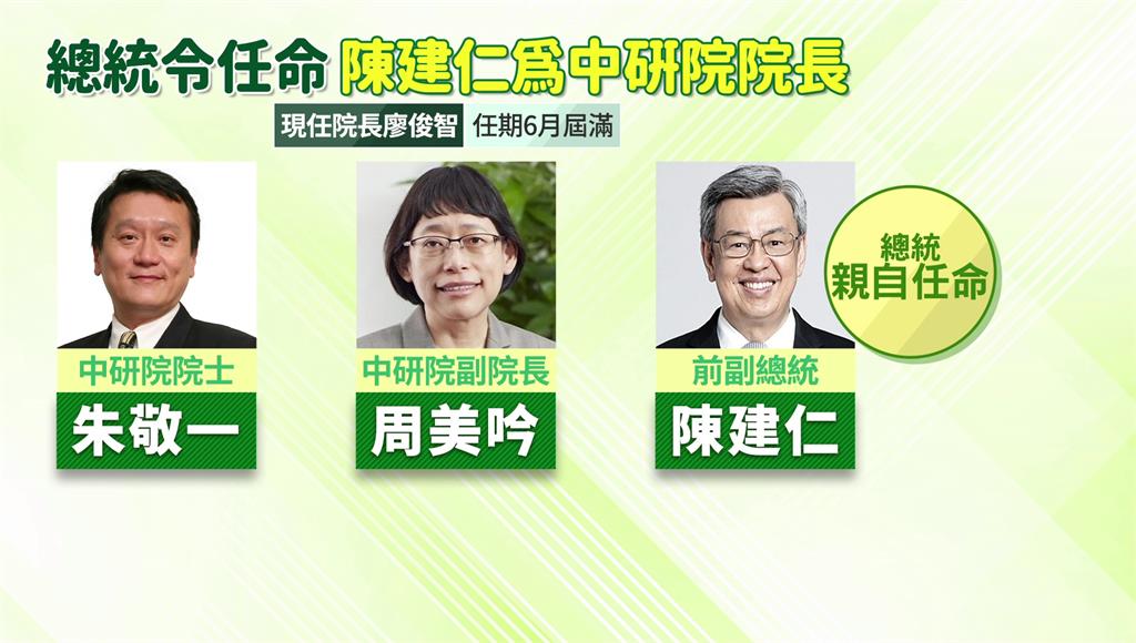 前副總統陳建仁卸任後,回歸中央研究院研究員身分,身為流行病學及公共衛生專家,他曾表示,學術研究是終生志業,公共服務則是奉獻使命。總統府今(2)日發布總統令,特任他為中央研究院第十三任院長,任期五年,在離開政壇後,陳建仁將帶領台灣最高學術研究機構。