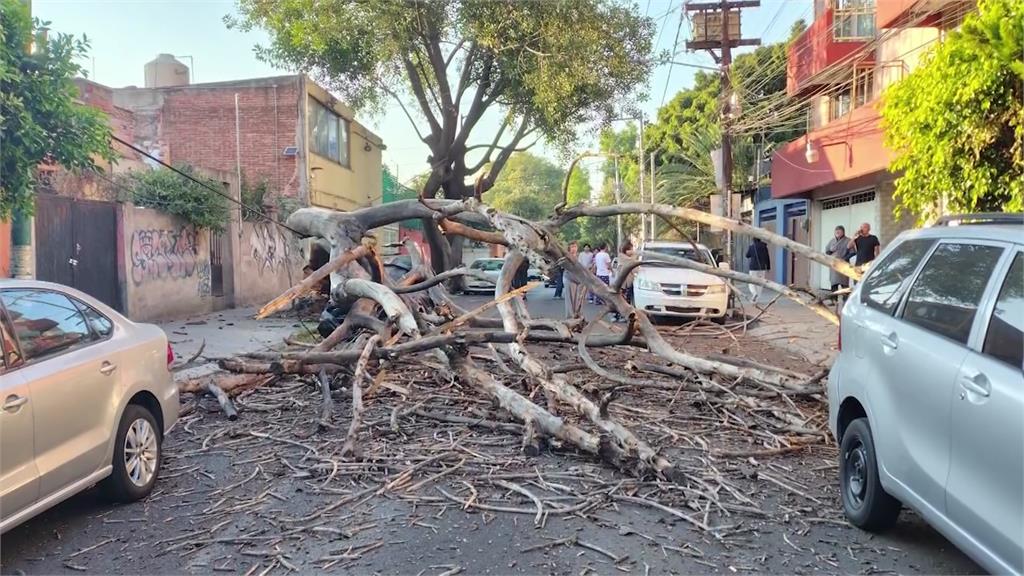 強震導致磁磚崩落、樹木倒塌,現場一片狼藉。圖/路透社、美聯社、CNN地震警報狂響 墨西哥總統例行記者會被迫中斷