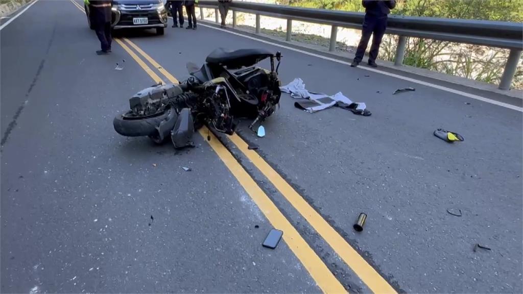 事故現場機車嚴重損毀,後坐墊掀開,車殼零件、安全帽等物品散落路中。警消獲報出動吊掛器材車支援,將傷者吊掛回路面送醫,送往花蓮慈濟醫院搶救後仍宣告不治。
