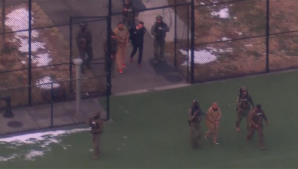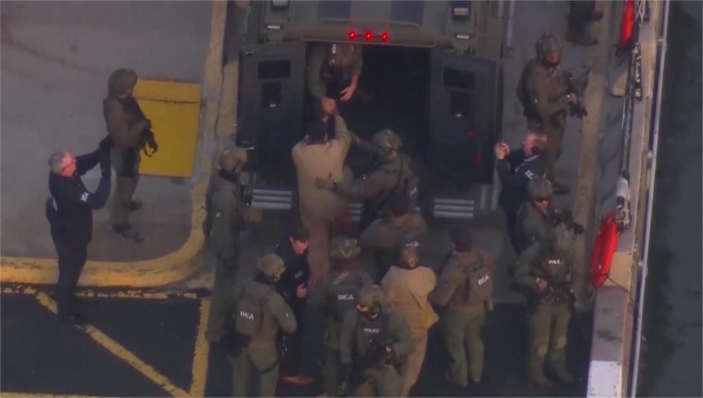 維安持長槍戒護 馬杜洛夫婦戴手銬走下直升機