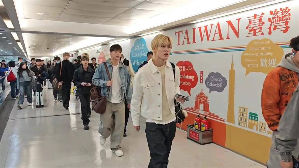 超人氣男女混聲組合ALLDAY PROJECT五人穿著有型,有如時裝伸展台走秀一般,現身桃園國際機場時氣場全開;另外還有在2024年出道的7人男團ARrC,更是不忘與鏡頭親切打招呼,甚至選擇走一般通關,讓部分在入境大廳守候的粉絲能夠近距離接觸到他們。