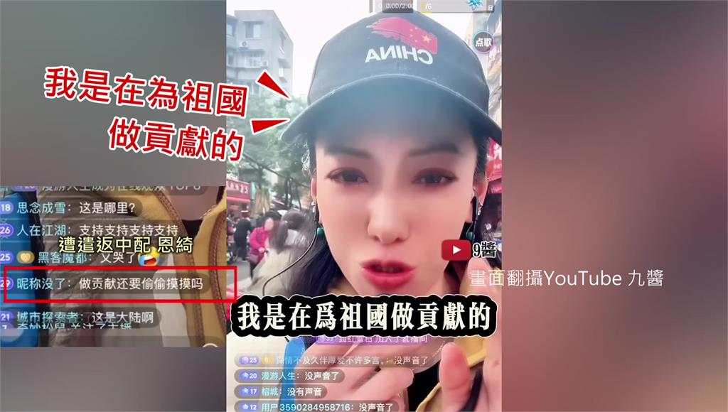 先前已被遣返的「恩綺」回中國後當起直播主,頭戴印有五星旗的帽子、口中講著兩岸一家親,但仍想繼續「吃台灣豆腐」。日前開直播時,遭公安盤查並被要求關閉直播,當街崩潰痛哭,並多次向觀眾強調自己「為祖國奉獻」。直播中她還被帶回派出所,可見即便一心為祖國,生活也未必順利。