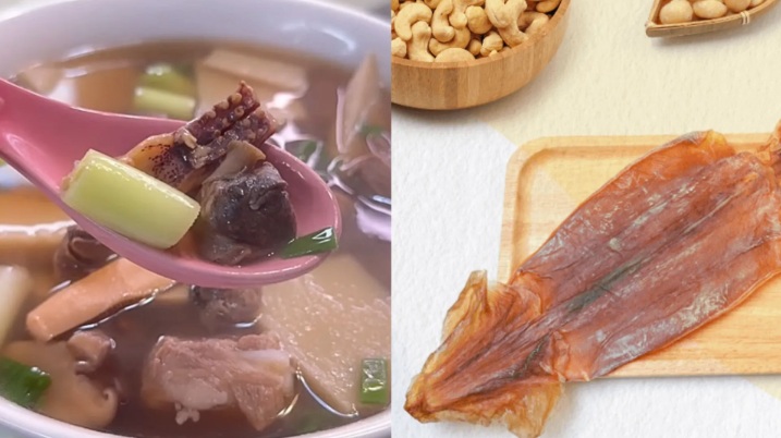 乾魷魚不只適合烤來當零食,更是料理高手的秘密武器!台灣傳統經典年菜「魷魚螺肉蒜」,魷魚鮮香搭配螺肉海味、桶筍酸香與排骨肉感,熬煮出經典的古早味濃郁湯品。香氣四溢、滋味厚實,承載著超過數十年的溫暖年節記憶。