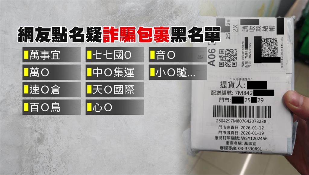 有網友疑似收到詐騙包裹,被店員提醒別領。圖/台視新聞網友們整理了疑似「詐騙包裹」的黑名單,上頭列出廠商高達22間,但也有公司被誤認,黑名單上的萬事宜公司表示,他們也感到相當困擾,「我們有去警察局提告,上網查一下就知道我們是軟體設計公司,根本不可能寄出包裹」。