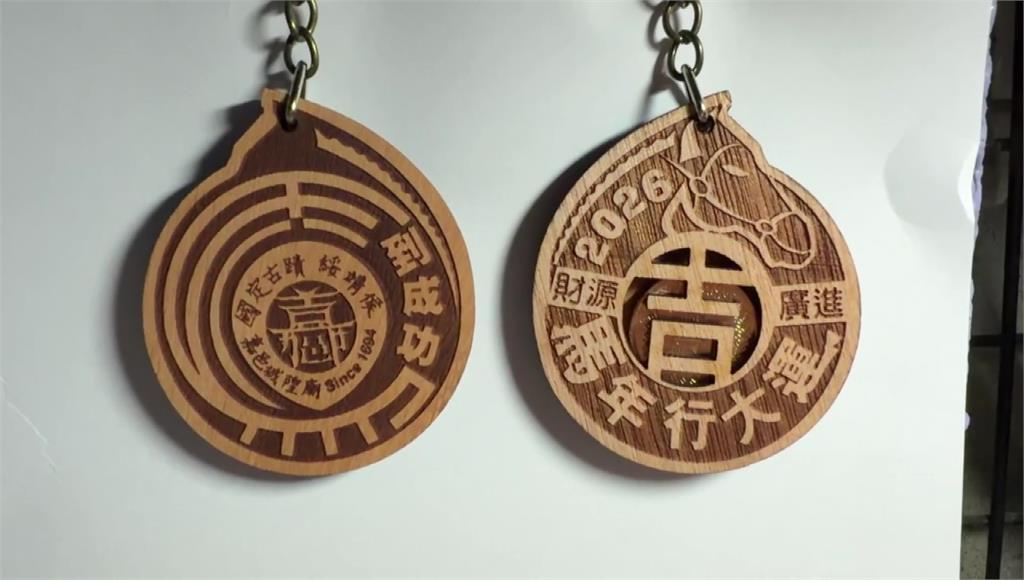 為迎接2026馬年的到來,嘉義城隍廟特別推出「馬年吉祥、超越顛峰」錢母吊飾。錢母正面像是一個金牌,中間雷雕一個「吉」字,象徵馬年吉祥,同時也取台語諧音「麻吉」,代表好馬年、好麻吉;背面則刻上「馬到成功」,祝福信眾新的一年事業、財運都很旺。