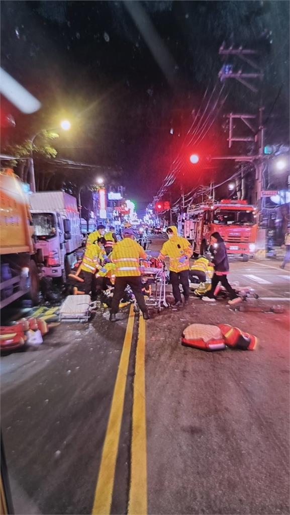 現場共1位隊員、6位民眾遭撞,救護人員緊急將傷者送醫。圖/台視新聞責任編輯/網路中心