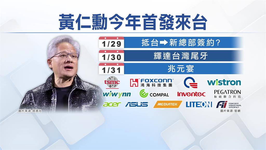 黃仁勳在中國最後一站將到深圳分公司參加新春年會,預計29日就會飛來台灣,外界關注他可能會出席輝達北市科新總部與台市政府的簽約儀式,30日則是參加輝達台灣分公司尾牙,31日將會舉辦兆元宴,台積電、鴻海、廣達、緯創、緯穎、仁寶、英業達、和碩、宏碁、華碩、聯發科、光寶科、工業富聯等供應鏈夥伴,都將是座上賓。
