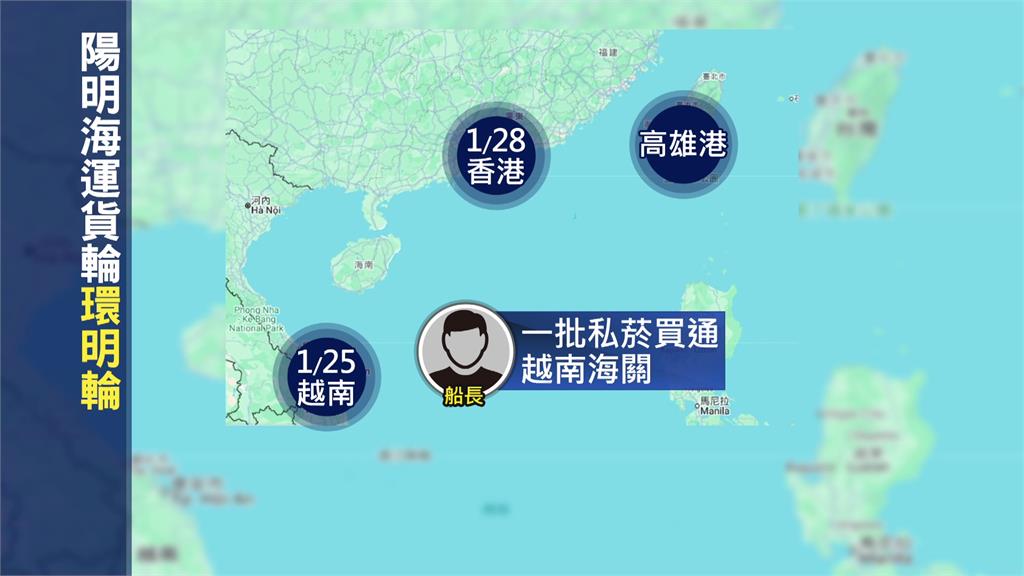 台灣大型海運公司陽明海運的貨櫃船被爆出走私毒品,初步了解,環明輪25號凌晨原定從越南停靠香港,再返回高雄港,但船長卻指揮運毒、走私大批海洛因,中間跳過停靠香港,29號深夜直接回到高雄港區。