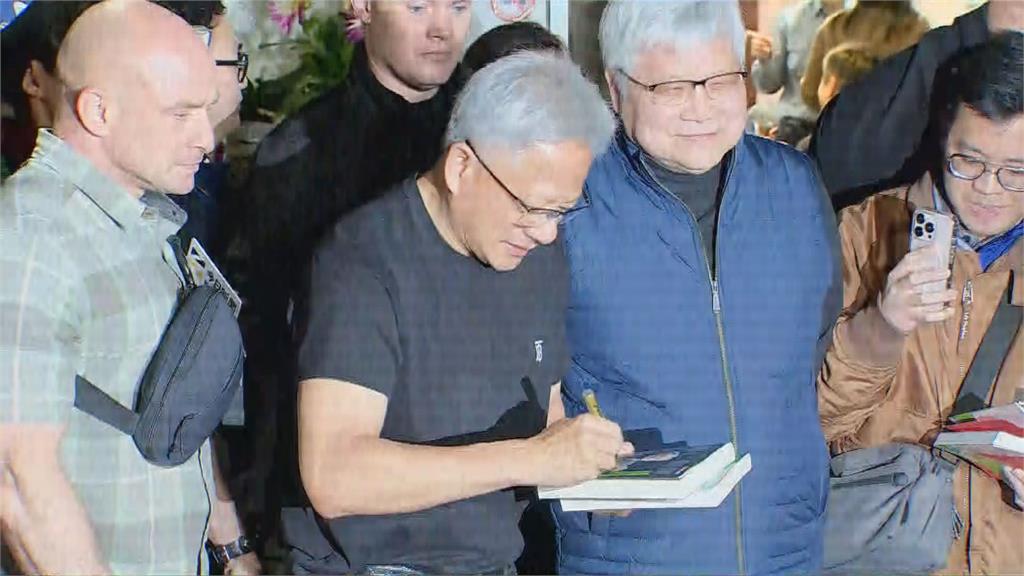 黃仁勳熱情幫粉絲簽名。圖/台視新聞