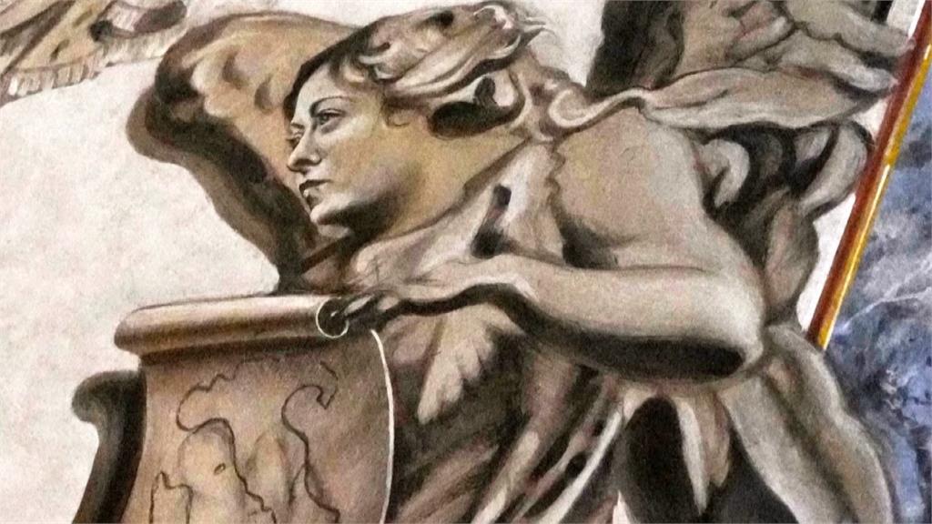 壁畫上的天使「撞臉」梅洛尼。圖/美聯社、CNN、路透社藝術家一開始否認在畫作中模仿總理的面孔,但外界批評持續升溫,反對派質疑這是政治宣傳,最終讓天主教羅馬教區及義大利政府看不下去。義大利文化部長已經下令調查,希望釐清這名修復師是否刻意將總理的臉畫進去。
