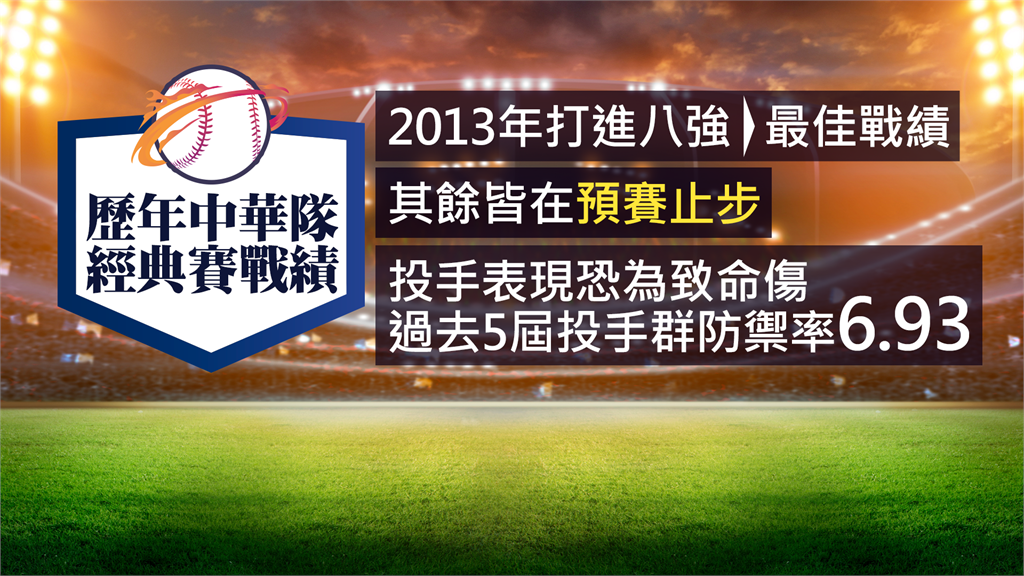 回顧中華隊經典賽戰果,最佳戰績僅止2013年打進八強,其餘都止步預賽,球評曾點出,投手表現堪稱致命傷,歷屆投手群防禦率高達6.93,打線再神勇恐怕都難以補救。