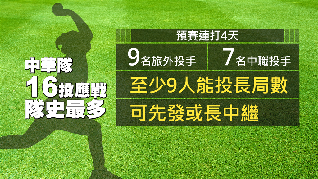 隨著世界棒球經典賽最終30人名單正式曝光,中華隊多達16人的「投手海」成為焦點,面對預賽四天四戰的考驗,選進包括林昱珉、徐若熙、古林睿煬在內的9名旅外投手,加上7名中職投手,一口氣帶16人,成為隊史最多,也是這屆預賽C組帶最多投手的球隊,有專家分析,至少其中有9人能投長局數,有望擔任先發或長中繼,讓調度更充裕!