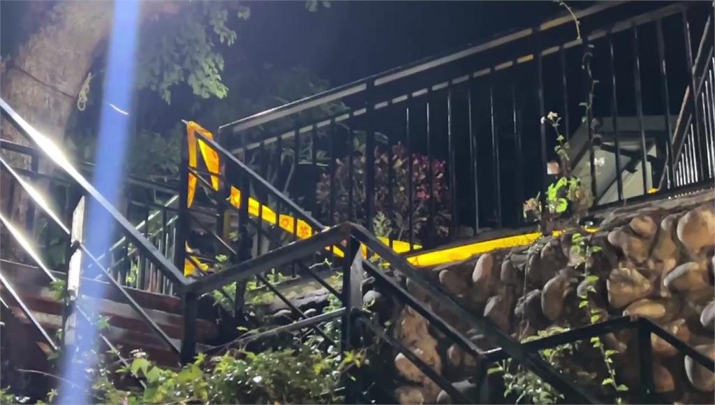 溫泉會館外拉起層層封鎖線,大批警力與鑑識人員來回進行採證,葬儀社人員接獲通知後,隨即趕抵現場,協助將女子遺體搬運上車,突如其來的意外也讓不少民眾嚇了一大跳。
