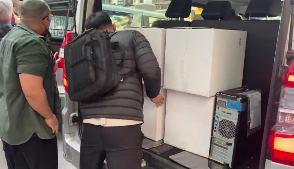 檢調搜索超過10個小時,帶走1部電腦還有7個紙箱。圖/台視新聞北檢證實,高金素梅等18名被告涉嫌詐領助理費、違反醫療器材管理法,還有詐領某協會補助款共3項罪名,但主任檢察官曾揚嶺旁邊,是調查局國安站主任楊任之,貪汙助理費案卻出動了國安站人員,恐怕高金素梅還捲入《反滲透法》。