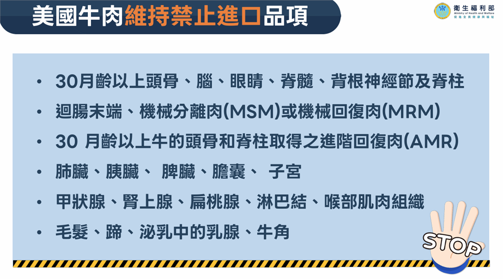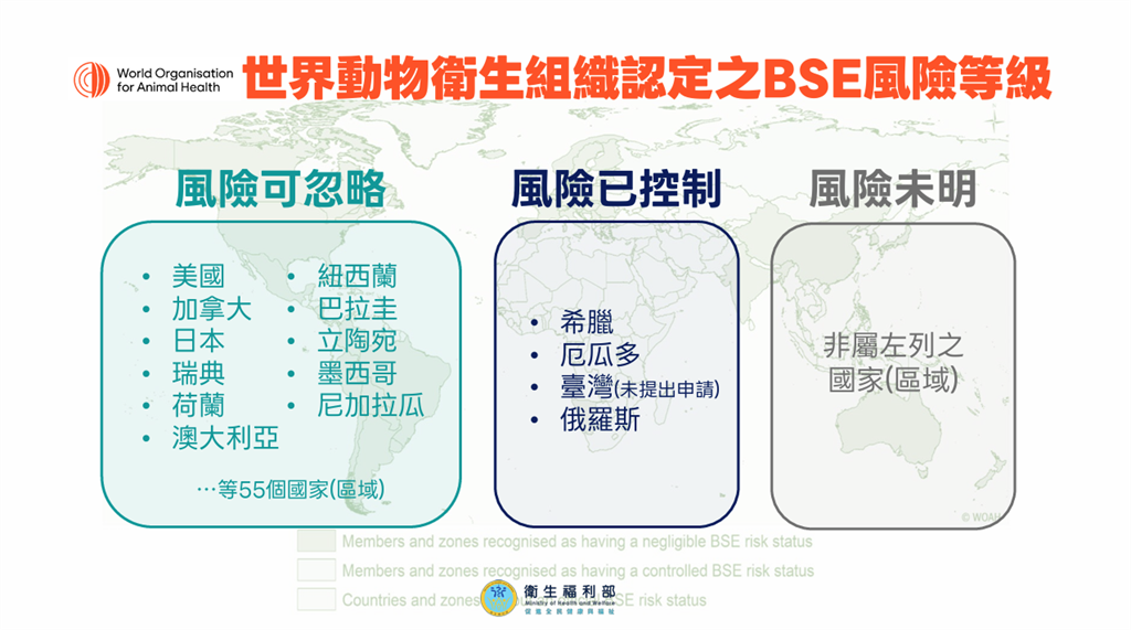 美國在2013年已被WOAH認定為BSE風險可忽略國家,已逾20年未曾發生具流行傳播風險的典型BSE案例。圖/衛福部提供