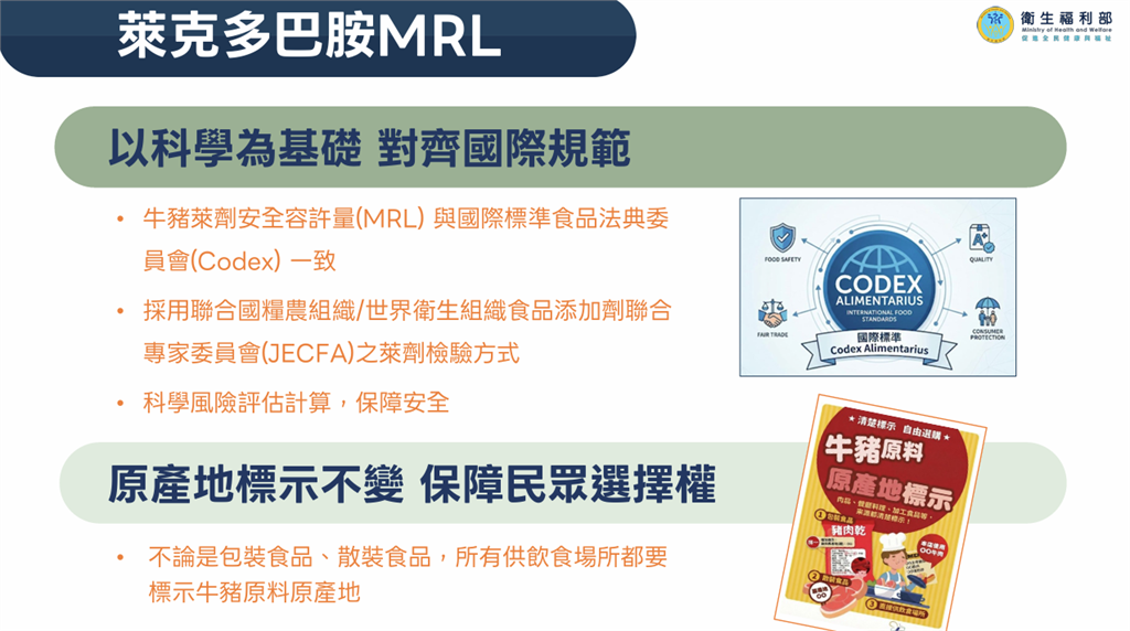 萊劑對齊國際標準 原產地標示與抽驗機制不變