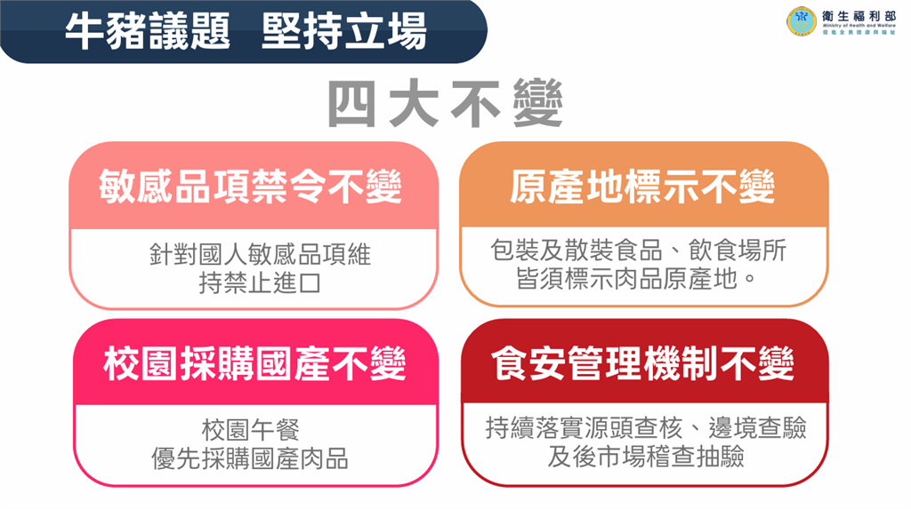 牛豬議題我方維持「四大不變」。圖/衛福部提供